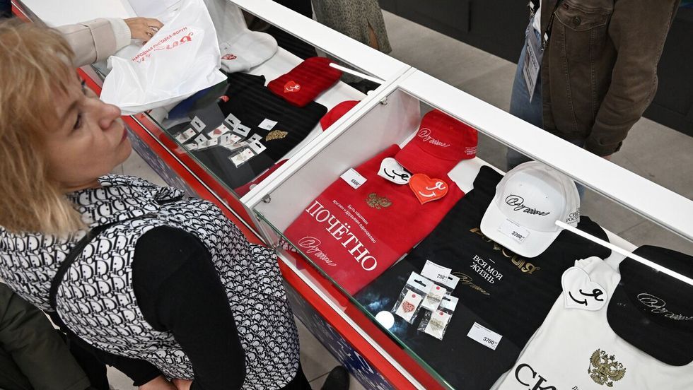 The merchandise was released on Wednesday as part of the international RUSSIA EXPO forum, with vendors selling T-shirts, hoodies, and baseball caps in a range of colors.