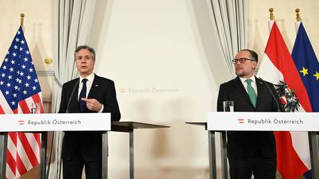 US Secretary of State Antony Blinken and Austrian Foreign Minister Alexander Schallenberg during a joint press conference in Vienna.