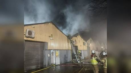 The London Fire Brigade working on the blaze in Leyton, March 21, 2024.