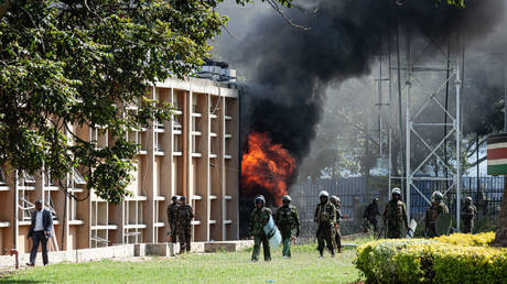 Kenyan-British activist Auma Obama, the half-sister of former US President Barack Obama, was teargassed while giving a live interview to CNN. Footage circulating on social media and local news channels shows the governor’s office in Nairobi ablaze, as well as a group of demonstrators trashing flags and furniture inside parliament and attempting to break down the Senate chamber doors.