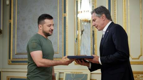FILE PHOTO. Ukraine's Vladimir Zelensky and US Secretary of State Antony Blinken