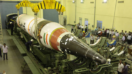 India's longest range nuclear weapon capable inter-continental ballistic missile the Agni-5.