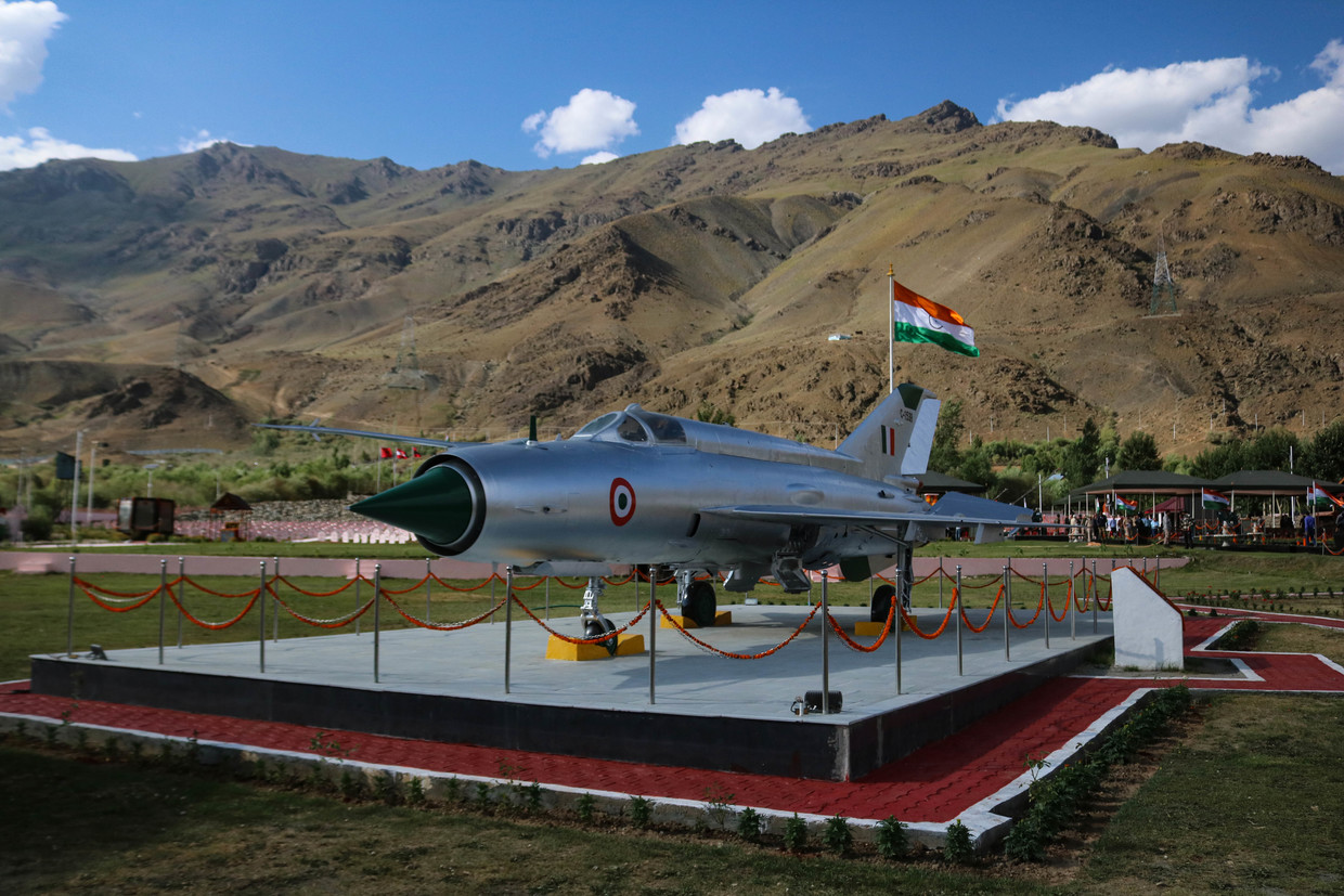 A MiG-21FL at the war memorial in Drass, about 160km east of Srinagar, Jammu and Kashmir, on July 25, 2024.