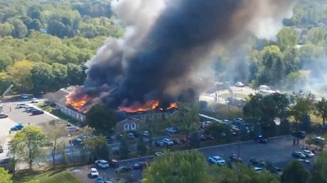 Drone footage of the incident from earlier in the day showed the church’s roof consumed by flames.