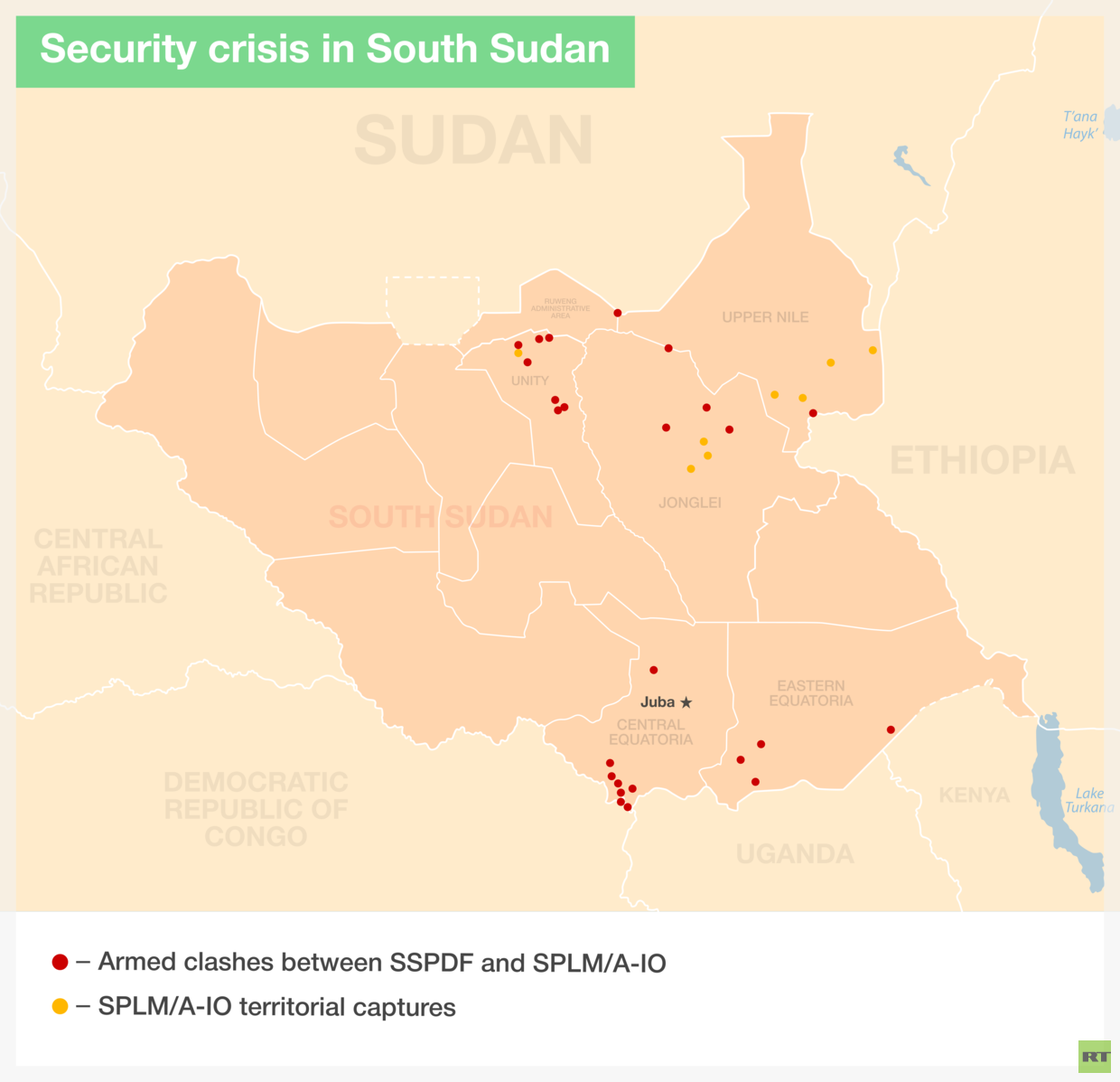 Commanders within the SPLM/A-IO have threatened to advance on the capital, Juba, which is currently protected by the SSPDF and a contingent of Ugandan troops sent to aid government forces. The opposition accuses Uganda of encouraging interethnic clashes and creating the risk of involving neighboring states, thereby transforming a local crisis into a regional one.