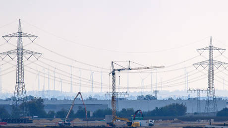 Construction machinery stands at the site of a canceled Intel chip factory in Magdeburg, Germany, September 19, 2024