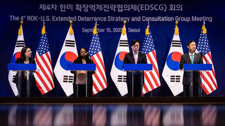 South Korean and US officials holding a press-conference after EDSCG meeting in Seoul.