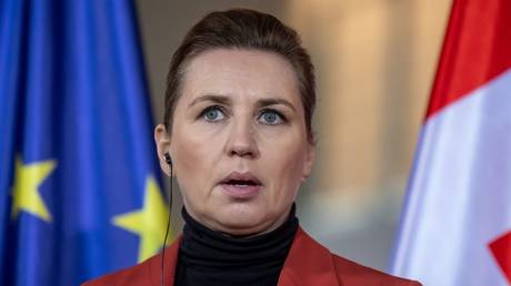 Denmark’s Prime Minister Mette Frederiksen at a meeting with Chancellor Scholz in Berlin, Germany, January 28, 2025.