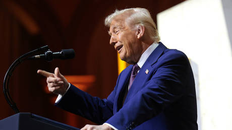 US President Donald Trump delivers remarks at the Republican Governors Association meeting in Washington, DC on February 20, 2025.