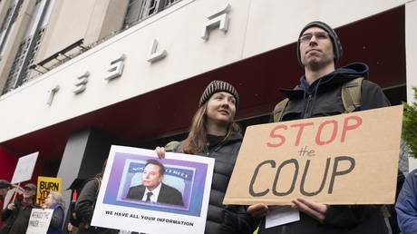 FILE PHOTO: A protest against Elon Musk in Seattle, Washington.