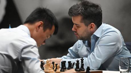 China's Ding Liren and Russia's Ian Nepomniachtchi compete in the fourth game of the 2023 FIDE World Chess Championship Match in Astana, Kazakhstan.
