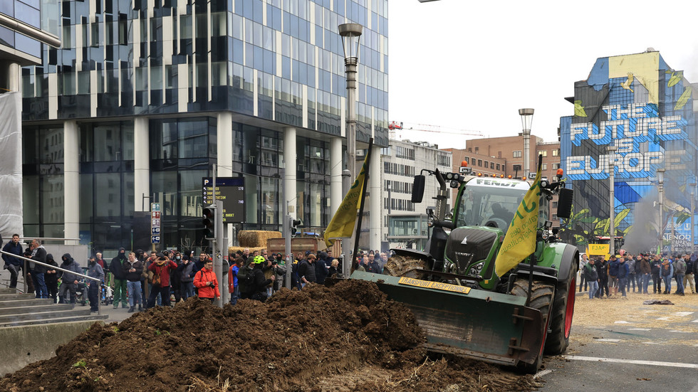 Tensions reportedly flared as campaigners moved on to the central Rue de la Loi, where tractors unloaded beetroots and wooden pallets in front of a police blockade, bombarding officers with straw, eggs, manure, and fireworks. Two officers were injured in clashes with protesters, the Brussels Times reported.