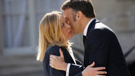 Italian Prime Minister Giorgia Meloni greeted by French President Emmanuel Macron ahead of the 'coalition of the willing' summit in Paris.