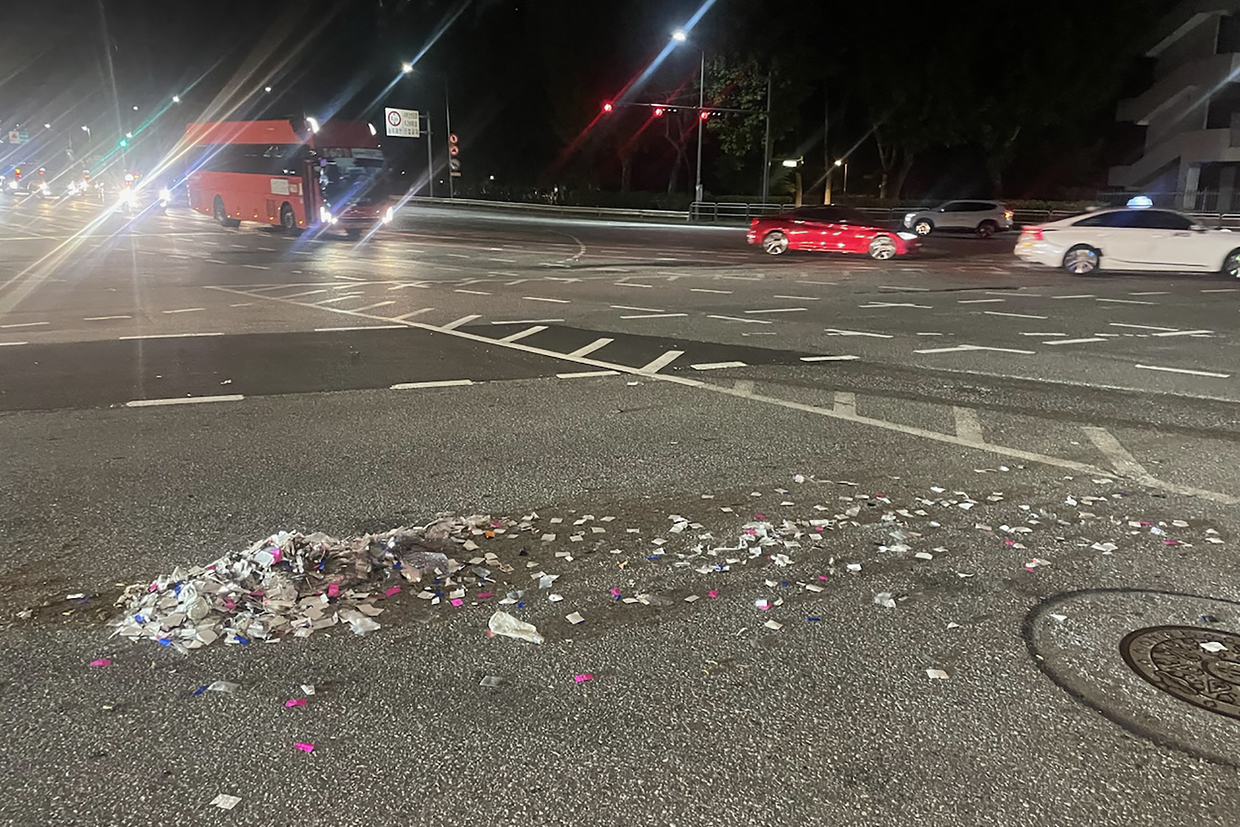 This handout photo taken by the South Korean Defence Ministry between the night of May 28 and 29, 2024 and released on May 29 shows unidentified objects believed to be North Korean propaganda leaflets on a street in Seoul.