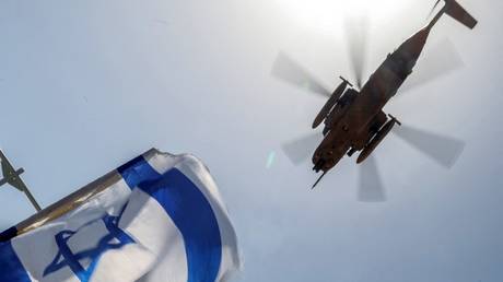 An Israeli air force CH-53 Sea Stallion military helicopter flies over Sheba Tel-HaShomer Medical Centre in Ramat Gan, Israel, June 8, 2024