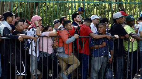 Migrants wait to be processed by the Mexican refugee commission in Tapachula, Mexico, on January 27, 2025.