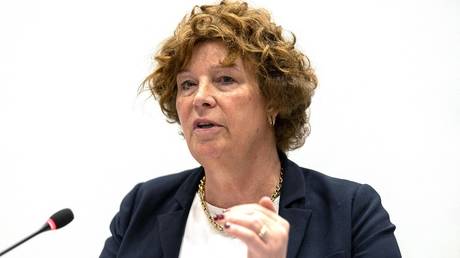 Petra De Sutter attends a parliamentary hearing in Brussels, Belgium, May 9, 2023