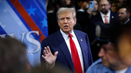 Donald Trump talks to journalists after debating Kamala Harris in Philadelphia, Pennsylvania, September 10, 2024