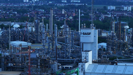 FILE PHOTO. The BASF chemicals factory stands at twilight in Ludwigshafen, Germany.