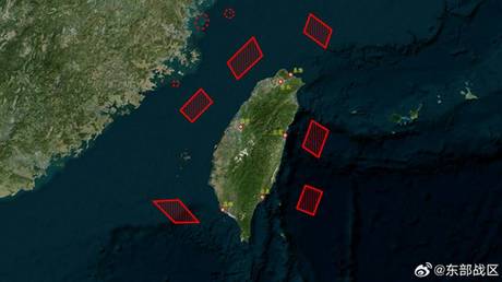 Beijing’s Eastern Theater Command said that the Joint Sword-2024B exercise involving the Army, Navy, Air Force and other branches of the military would take place north, south and east of Taiwan, explaining that the move “is a strong deterrent to the separatist forces seeking ‘independence’ and is a legitimate and necessary action to defend national sovereignty and maintain national unity.” The command also released a map of the drills, with several marked areas essentially surrounding the island on all sides.