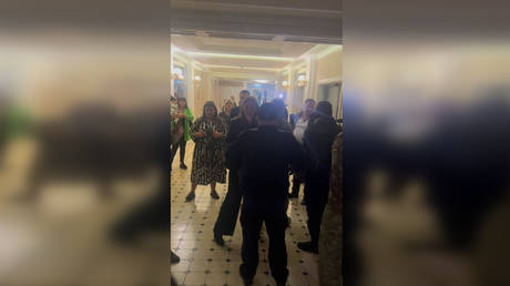 Military draft enforcers disrupt a wedding celebration in Lviv, Ukraine.