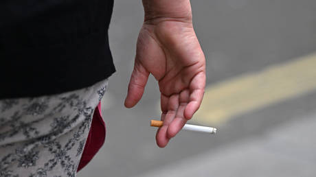 A man holds a cigarette in London, 2022.
