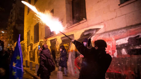 Protests have been taking place in Georgia since late last month, when the ruling Georgian Dream party secured victory in the parliamentary election. The party is known to advocate pragmatic relations with all neighbors, including Russia, and has recently passed laws considered controversial in the West, including a foreign agents law.