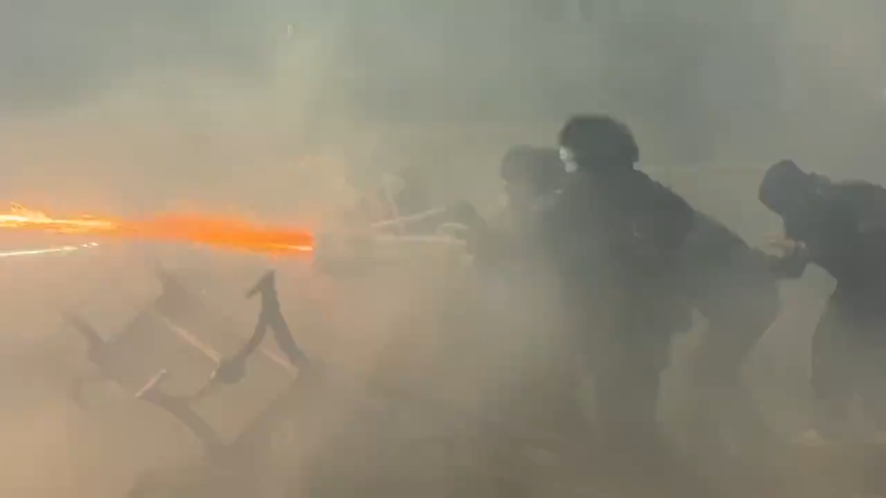 Pro-EU protesters deployed a makeshift ‘fireworks minigun’ against riot police in Georgia’s capital, Tbilisi, on Saturday evening.