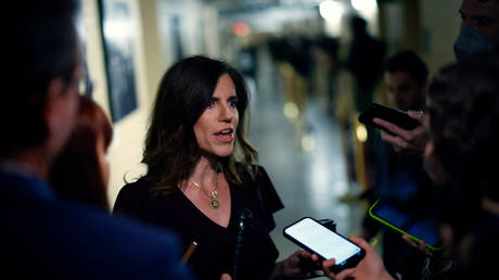 US Rep. Nancy Mace arrives for a House Republican caucus meeting on November 19, 2024 in Washington, DC.
