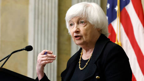 Janet Yellen talks to reporters during a news conference at the Treasury Department in Washington DC, October 22, 2024