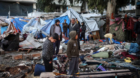 Palestinians inspect the site of an Israeli airstrike on a refugee camp in Gaza on December 4, 2024.