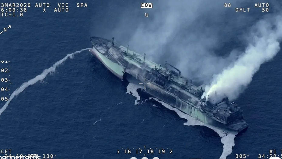What you’re looking at is not a sunrise — it’s the Russian LNG tanker ARCTIC METAGAZ (IMO 9243148) struck by a massive explosion in the Mediterranean this morning. Photographed by crew aboard a merchant vessel, via Vanguard Tech. pic.twitter.com/QrX5BWWTr0