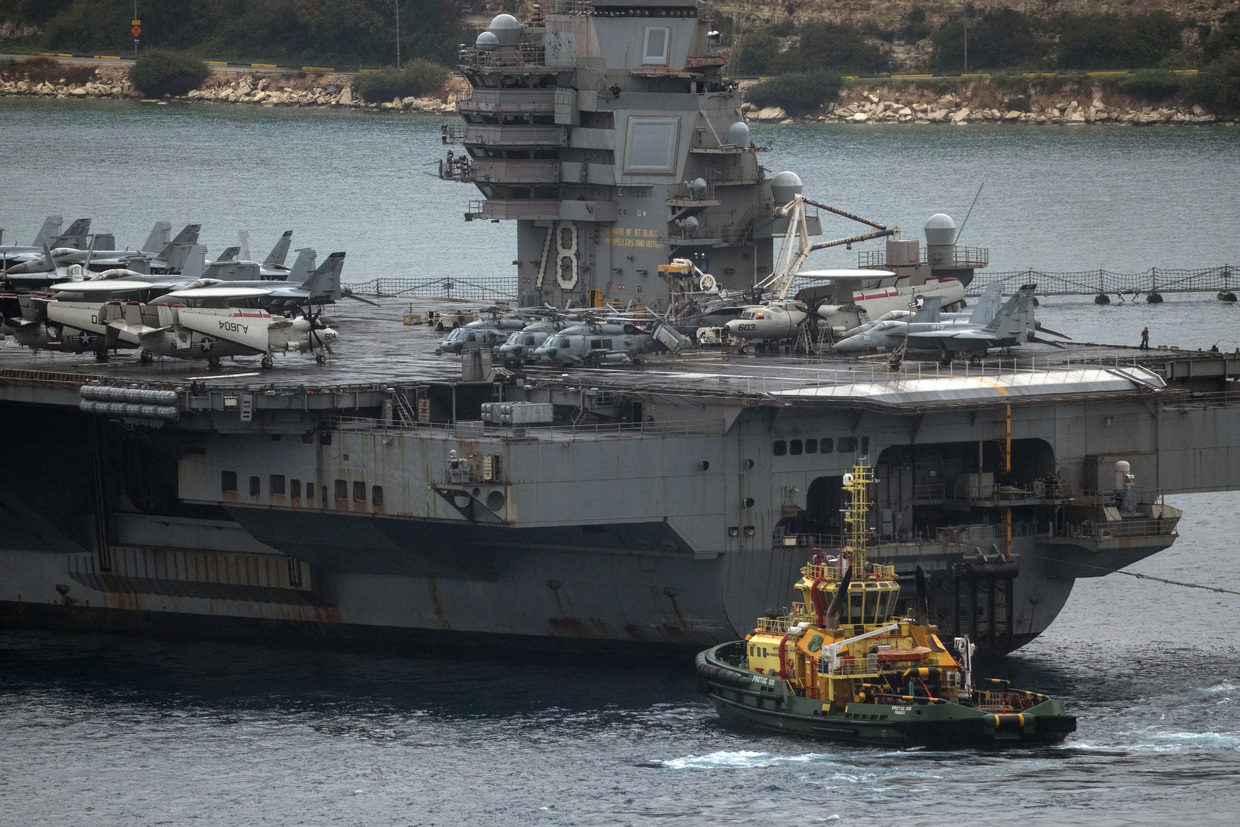 Upon arrival in Crete last weekend, the aircraft carrier appeared to show no superficial signs of damage, apart from looking heavily weathered from its prolonged deployment all over the globe.