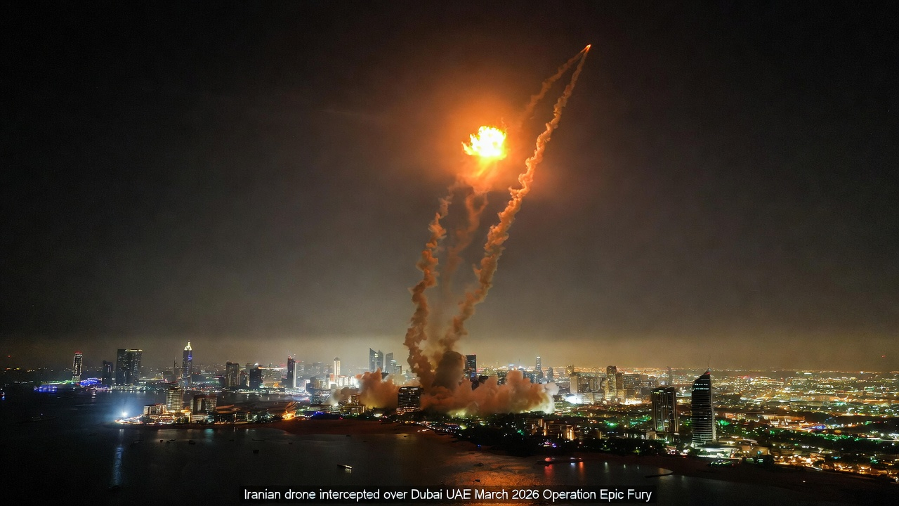 Iranian drone intercepted over Dubai UAE March 2026 Operation Epic Fury
